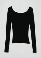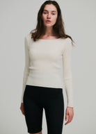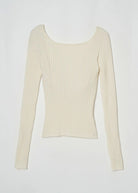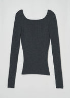 バックスタイルで魅せるミニマルなデザインのウールリブニットシェル。